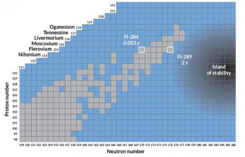 Работы же по синтезу сверхтяжёлых элементов, которые ведутся сегодня в Дубне, относятся уже к другой области исследований. Если в случае технеция речь шла о подтверждении предсказанного элемента периодической системы, то теперь исследователей интересует предел существования атомных ядер. Речь идёт о возможности существования области относительной устойчивости сверхтяжёлых элементов — того, что в физике называют «островом стабильности».